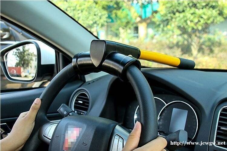 2、折叠锁不受限于方向盘尺寸,美观大方.折叠锁很容易被液压剪剪断,也是锁不住方向盘的横幅。